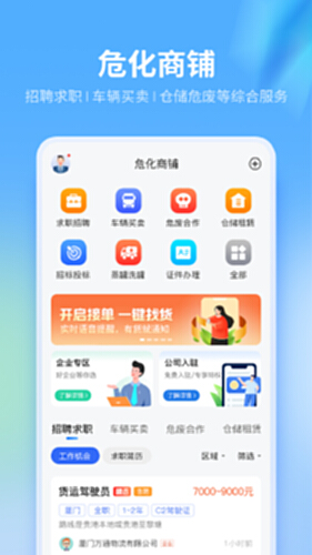 『危化镖局』为危险品物流行业提供,找车、找货、找公司等免费综合性服务。运用大数据将危险品运输车、运输公司、危化品生产企业的货物流动信息进行及时有效的共享对接,提高车主配货效率,降低空返率,提升货源公司找车效率,降低运输成本,改善整体化工物流行业的配货效率。为车主找货(配货)、货主找车(托运)提供全面的车货匹配的货运信息服务。