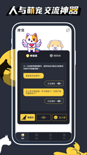 【狗语 ←→ 人语】把人说的话转换成狗能听懂的语言;把狗的叫声转换成人语。