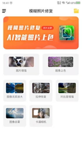 本软件是一款非常神奇的照片处理工具,可以帮助用户处理修复老照片,同时也有一些趣味玩法等待您的探索。功能众多,包含AI上色,图像增强,图像去雾,图像拉伸处理,拍照卡通脸等。