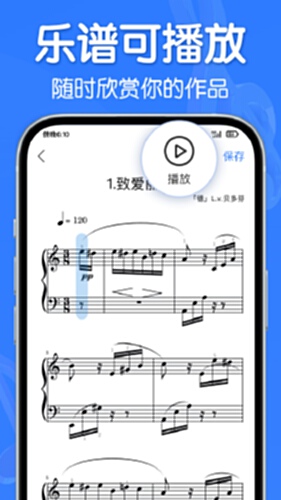 3、【可播放】乐谱播放让你更快速欣赏自己的作品,并纠正错误使乐谱更完善。