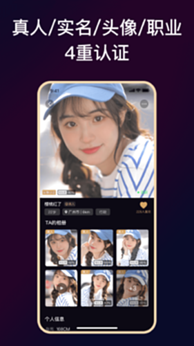 平台主打真人在线,提供真人认证、职业认证、实名认证、头像认证功能,多角度保障用户交流真实性,后续也将持续完善认证维度,在众多社交软件中,打造独特的真诚真实交流氛围