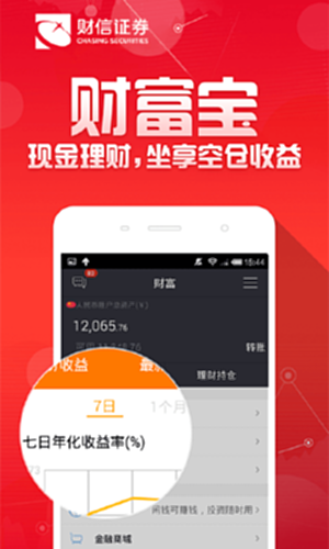 财富聚财,是财信证券有限责任公司倾力打造的,集股票行情(支持A股、基金、港股、美股、外汇、期货、债券)、开户、交易、资讯等功能为一体的投资理财软件。满足客户看行情、看主力、看资讯和在线交易的全部需求。