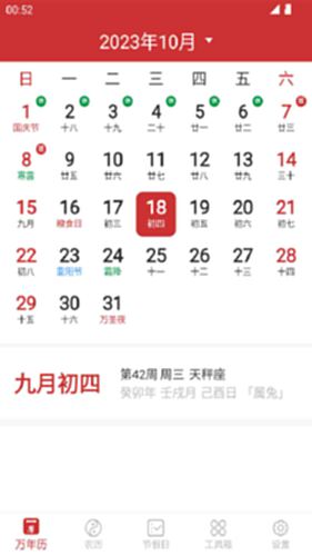 1 万年历日历功能,提供星座、属相、放假调休安排、农历节气、节日信息