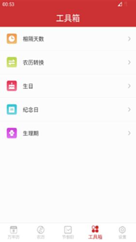 3 实用工具箱,日期相隔天数计算,农历公历转换,生日提醒,纪念日提醒,生理期提醒