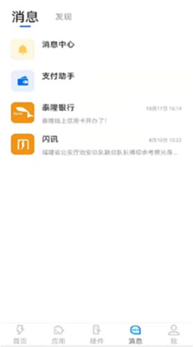 2、“消息”,闪光交互通知随时收取查询,如快递通知、收付款通知等。