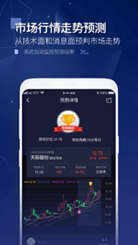 (9)个股预测:用户可以通过设定目标股的涨跌幅度和时间周期发布个股预测信息,检验您的预测水平。