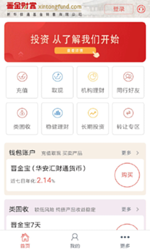 晋金财富是新华信通基金销售有限公司倾力打造的、由中国证监会批准设立的基金销售平台。晋金财富致力于打造类固收财富管理平台,为客户提供7*24小时全天候线上服务,助力客户财富保值增值。