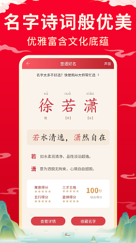 【产品特性】传承周易人文思想,根据新生儿出生时间,为婴幼儿、小孩提供名字及解名,全方位解读名字寓意,让你了解姓名隐藏的含义,已成功帮助解决了千万用户的起名、解名的烦恼;