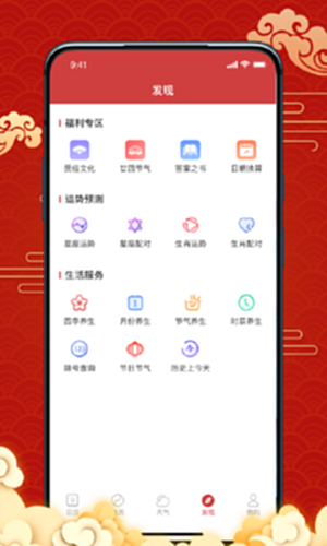 ①日历:黄历宜忌、节日节气、吉日查询、历史查询;