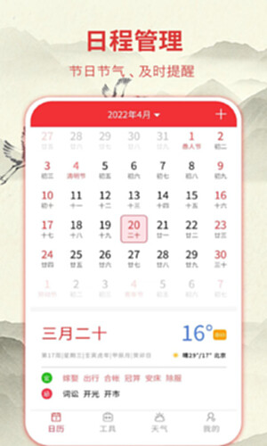 为您标注了中国传统的节假日、节气等数据,让您可以更好的计划安排自己的生活。