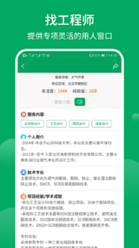 [工程师]集成环保细分领域的工程师及用工资源;包含水环境、大气环境、环境修复、环境监测、低碳节能、固废资源化、噪声治理等领域的专业工程师人才,提供顾问咨询、项目设计、安装调试三大类服务,即时获得专业有效的解决方案。