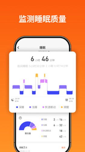3、记录每天的睡眠情况,告诉您每天的深睡时间、浅睡时间等睡眠状况。