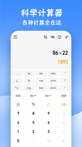 【科学计算器】支持对数函数计算、三角函数、绝对值、反三角函数、阶乘、随机数、最大值最小值、开方、定积分、导函数、排列组合、最大最小公约数等函数算法和常量算法计算;
