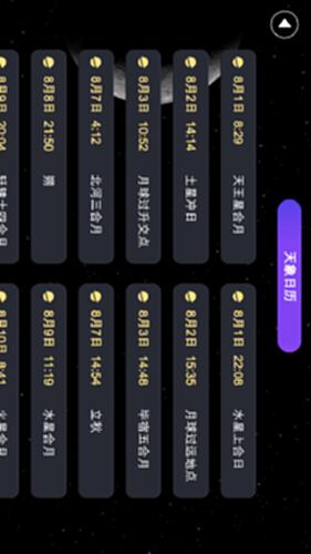 支持查看月相、月初月落时间和月龄等,不受观测地点和天气的影响,可切换日期来获得不同时间点的月亮信息;