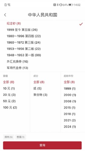 1)查询检索过程中可以标识出用户“已拥有”和“我想要”的纸币