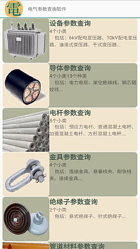 本软件主要功能是以手机APP的形式,在保证手机网络连通的情况下,方便用户在任何位置、任何地点查阅繁琐的电气类设备、材料参数,解决用户因繁琐的电气参数随时携带多重样本、书籍的烦恼。