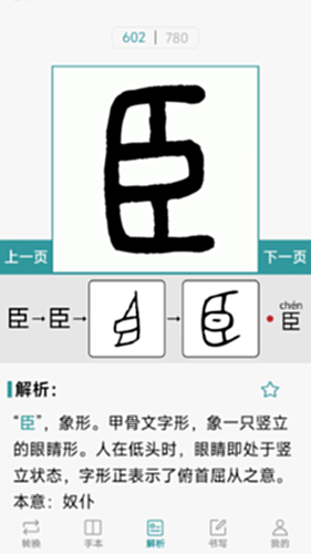 本app梳理、思考与简体字对应的繁体字,为减少阅读压力极尽可能的精简叙述内容。以甲骨文、金文字根为基础(字根从593页起),参考众多相关文献,详细的梳理繁体、小篆文字的本意,让用户在不知不觉中形成深刻记忆。