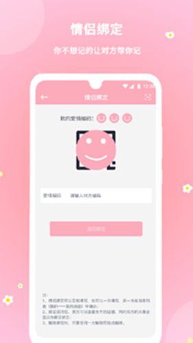 绑定情侣之后,可让对方帮你记录哦,提醒时也可以提醒对方,简单方便~