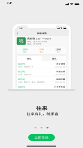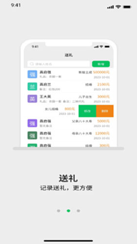 =共享=:一个家庭使用一个账号,亲朋详情、礼簿收礼、送礼记录同步展示,分家后还可以共享礼簿。