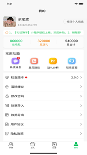 3.优化“我的”展示界面、礼簿展示方式、收礼、送礼展示内容;