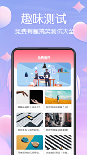【测评类型丰富】多类心理健康测评,有关乎职场的职业性格测评、职场竞争力测评,有发掘你的人格魅力的人格魅力评估、智商检测器;还有为你提供专业的测评文章。
