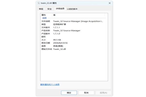 TWAIN_32.DLL是与TWAIN标准紧密相关的动态链接库文件,专为32位Windows系统上的应用程序与图像输入设备(如扫描仪、摄像头)之间的通信提供支持。作为TWAIN协议实现的关键组件,TWAIN_32.DLL允许应用程序通过TWAIN接口获取图像数据。在Windows 9x/2000/XP等操作系统中,TWAIN_32.DLL作为系统文件随系统发布,对图像输入功能至关重要。