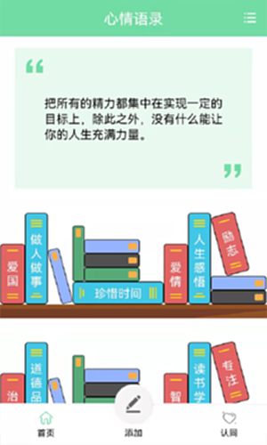 内容丰富,语录云集。有了名人名言心情语录,再不会为写心情签名、爱情、励志、伤感、爱国、心灵、正能量、名人名言等类型的句字而发愁,不会再为发伤感说说、每日心情、晚安心语而困惑。精选优质美句,给你正能量和好心情。