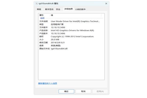 2、图形驱动核心:作为 Intel 图形驱动程序的一部分,igd10iumd64.dll是集成显卡运行的核心文件,处理图形渲染任务。