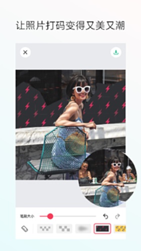 您可以从您的照片图库中选择,或者拍摄的照片进行处理。您手指涂抹的区域马上就变成了马赛克。
