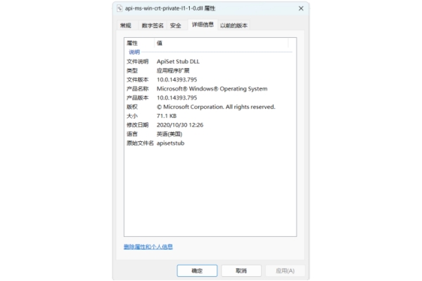 api-ms-win-crt-private-l1-1-0.dll是Microsoft Visual C++运行时的重要组成部分。api-ms-win-crt-private-l1-1-0.dll提供关键的C运行时功能,如内存管理、I/O操作、字符串和数学函数,以及安全增强特性,确保应用程序在不同Windows版本上的兼容性和稳定性。缺失或损坏api-ms-win-crt-private-l1-1-0.dll文件可能导致应用程序启动失败、系统错误或崩溃。