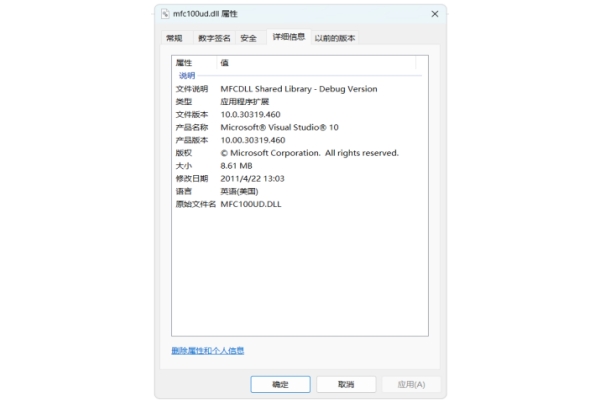 1、提供MFC库功能:mfc100ud.dll为应用程序提供Microsoft Foundation Class库的调试版本功能,支持C++开发者快速构建Windows应用程序。