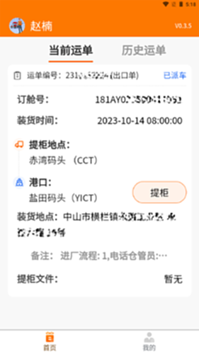主要功能:司机使用该App接收到运单并完成相应的运输全流程操作。主要实现功能包括:查看运单,提柜操作,装货、卸货操作,还柜操作,费用记录。在该APP上接收指派的货运单,查看运单详情及运输要求,前往指定地点提取柜箱,到装、卸货地点装、卸货物,把作业完成后的柜箱归还指定地点;记录业务操作过程的各项费用,查阅运单操作详情。