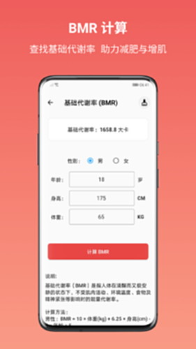 计算基础代谢率 (BMR),基础代谢率 (BMR) 是当一个人清醒且极其安静时的能量代谢率,