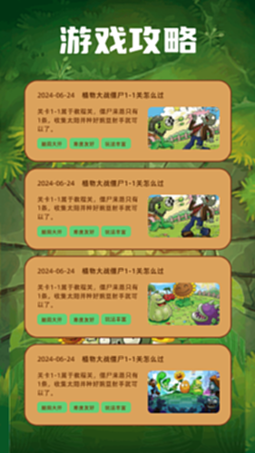 一款极富策略性的游戏攻略,玩家需要利用各种植物和丧尸的特点,发展出最强大的防线来抵御丧尸的进攻。在游戏中,玩家可以使用各种植物,每个植物都有自己独特的能力和作用。游戏的主要玩法是通过在一条条道路上布置植物,利用它们的能力,抵挡住一波又一波的丧尸。每条道路上的丧尸数量和种类都会不断变化,玩家需要根据应用提供不同攻略来调整自己的策略。