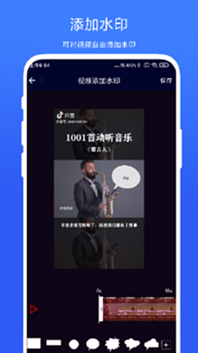 一款短视频剪辑工具APP,可以实现:图文一键生成视频、给任意视频添加水印、对多个视频进行快速合并、对长视频进行截取保存、提取视频里面的音频文件、对视频进行倒放、提取视频里面的关键帧等功能。