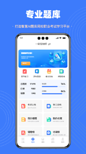《智考典题库》包含各类职业资格考试题库,是一款专业化AI智能学习题库软件。致力于学员轻松考试,提供了建筑工程、医药卫生、银行金融、财会经济、考公考编、职业资格、技能鉴定、计算机类、语言类等热门职业考试内容;