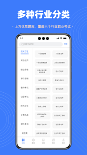 《智考典题库》包含各类职业资格考试题库,是一款专业化智能学习题库软件。致力于学员轻松考试,提供了建筑工程、医药卫生、银行金融、财会经济、考公考编、职业资格、技能鉴定、计算机类、语言类等热门职业考试内容;
