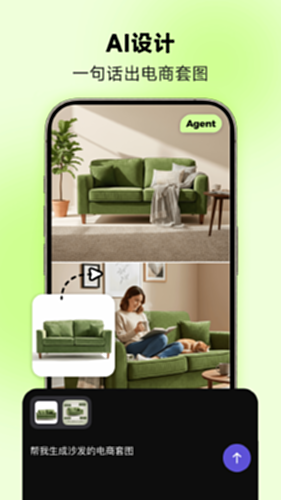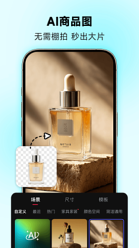 2、AI商品图:上传产品图片,AI自动生成多种场景图,增强展示效果。