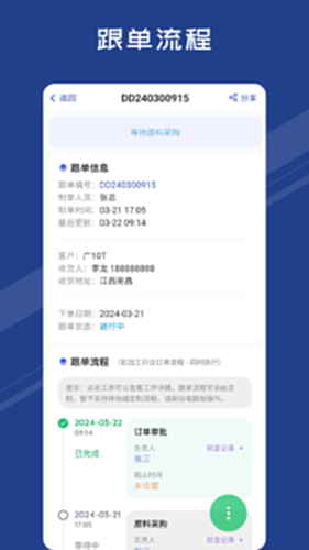 蚂蚁跟单是一款专业解决从下单到收款的进度追踪软件,适用于各个行业。