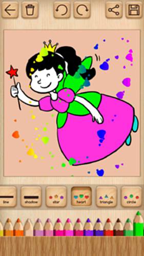 应用集合了美人鱼公主、飞机、汽车、恐龙、小兔子、莉比公主、火箭等卡通形象为原型,提供了涂色画画供学习创作。