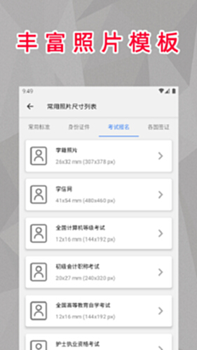 【证件照规格丰富,适用于多种场景】