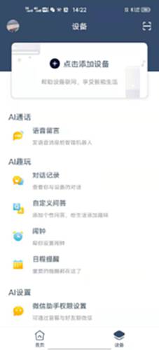 3. 设备管理:可以针对绑定的智能机器人设备进行管理,并进行相关功能的个性化设置。