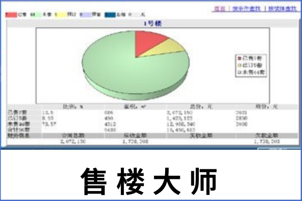3、销售统计: 售楼大师详细、准确、实时地统计销售数据,为决策提供有力支持。