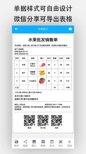 开单可直接打印出小票,并且可通过微信进行分享,也可导出表格。