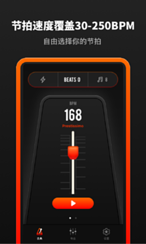 音乐节拍器,一款功能丰富,操作简单的专业节拍器APP!是专为音乐爱好者研发的节拍节奏学习软件,适合作为钢琴吉他等乐器学习的陪练工具,让你更快地掌握乐器练习的技巧。