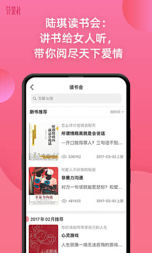 陆琪读书会讲书节目、每周励志鸡汤视频、每日早读书笺等女性成长励志读物,致力于培养用户的气质内涵, 鼓励女性内外兼修。