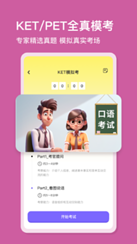 针对KET/PET英语考试,进行全真模拟考场练习,让孩子熟悉考试流程,轻松上考场。