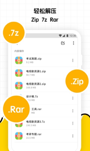 - 支持zip、7z、rar等多种常用格式压缩包解压