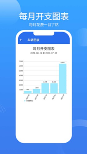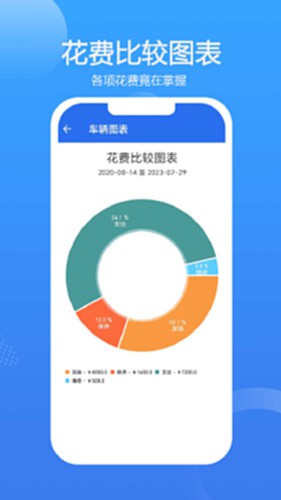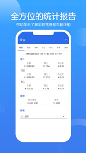 4.多维度报表:分类统计车辆花费和收入,生成清晰图表,每月开支图表,花费比较图表,里程表图表,燃油效率图表,加油站图表等10多种图表;