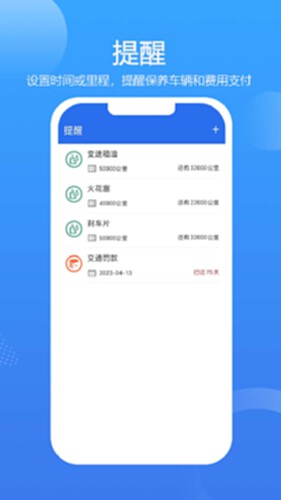 2.提醒:设置时间或公里数,提醒车主保养车辆或支出费用;